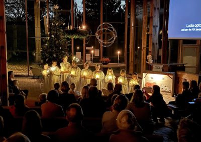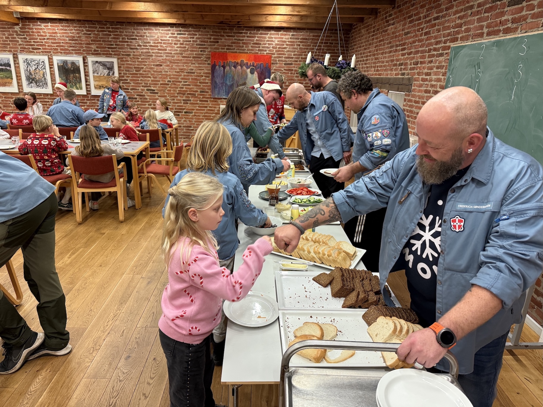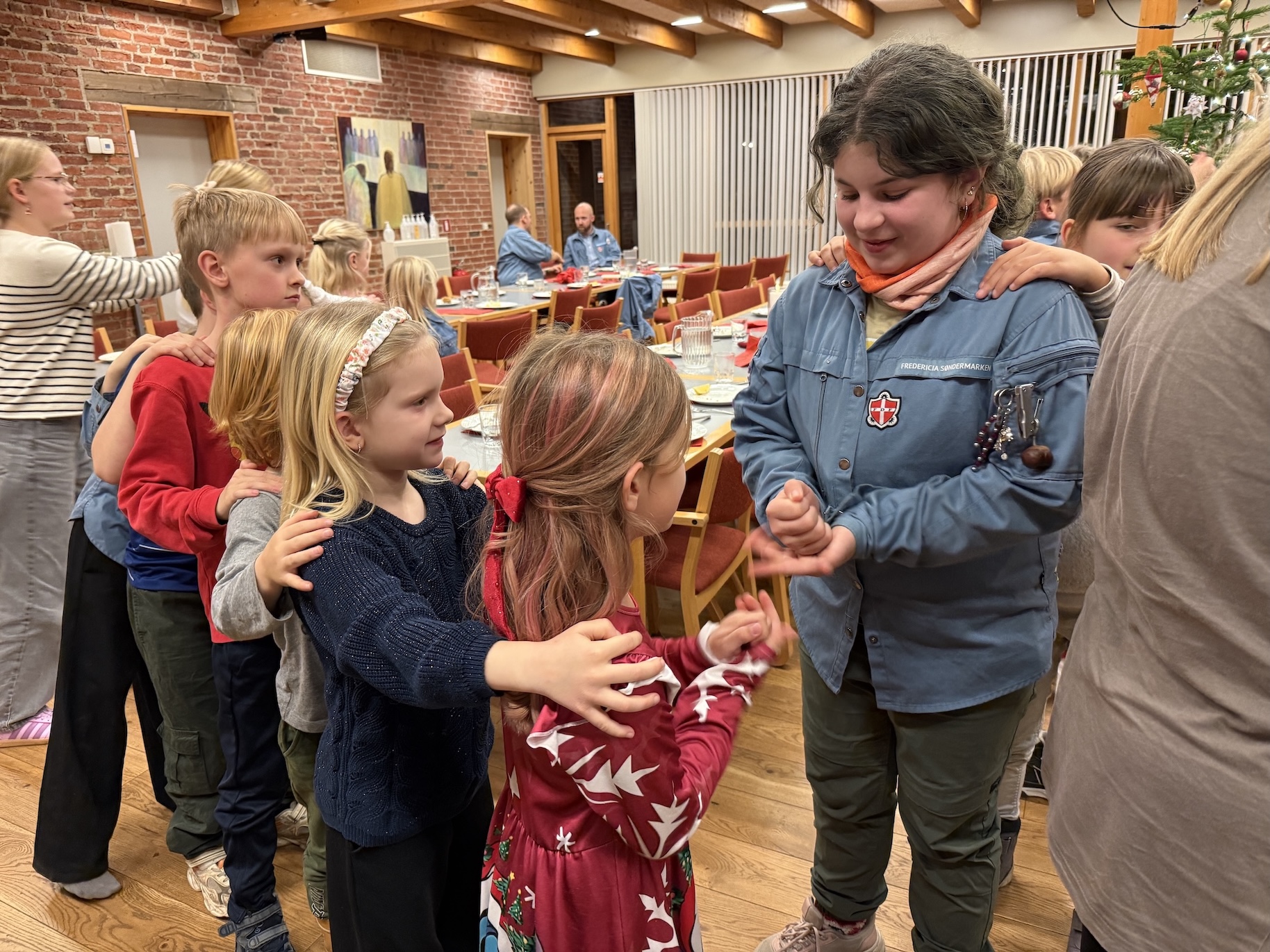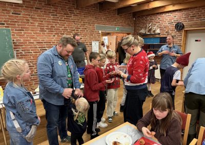 I starten af december afholdte vi igen Julefrokost for børn. Her var hele 75 med og fik underholdning, kæmpe 3 retters julefrokost buffet og der var også årsmærke-uddeling, hvor vi fejrede alle med alt fra 1års jubilæum og op. Til sidst gik vi over i kirken og var med til Familie jule-gudstjeneste, hvor også vores FDF-piger medvirkede med Lucia-optog.